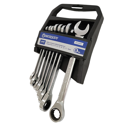 Набор ключей комбинированных с трещоткой 8,10,12-15,17,19мм 8ед. на холдере